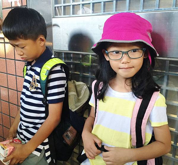 最後,兩個其實都不算早睡,但很顯然的妹妹有聽進去~出門前在門口的合照還是堆得出笑容來,但哥哥就很不配合><