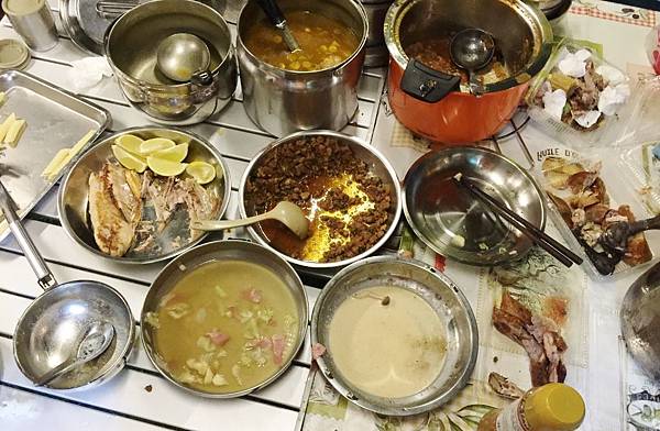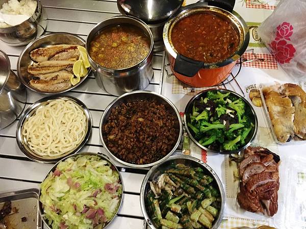 所以,第一天的晚餐非常的豐盛喔!幾乎都是各家媽媽的handmade!咖哩醬、義大利肉醬、紅白蘿蔔湯、炒青菜、白飯烏龍麵和煎魚,應有盡有~