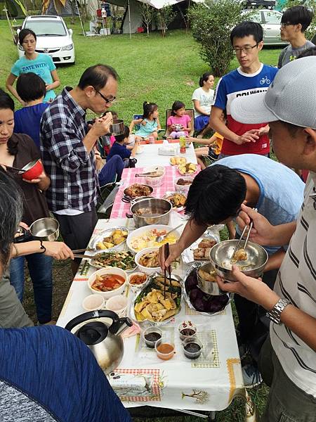 這種蛋捲桌一字排開,大家在草地上拿著碗公吃buffet的感覺也頗新鮮。