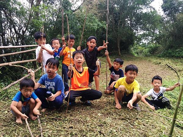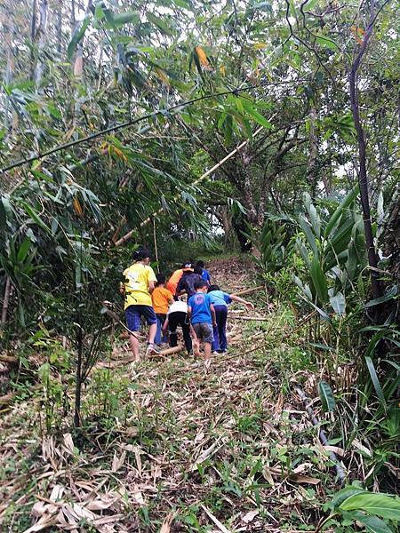 中間的路程每個孩子都不停的撿樹枝,丟樹枝,撿樹枝....