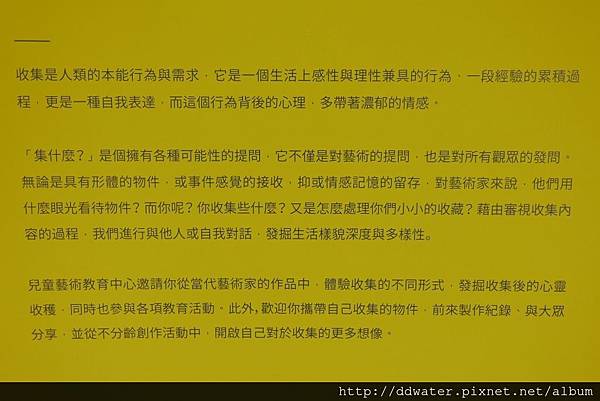 這裡也有一作策展主題的概念說明,把收集這個行為表達的更為明確-收集,是一段經驗的累積過程,更是一種自我表達,