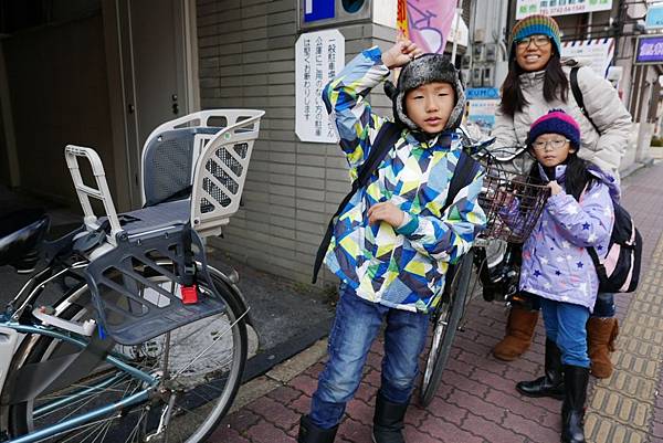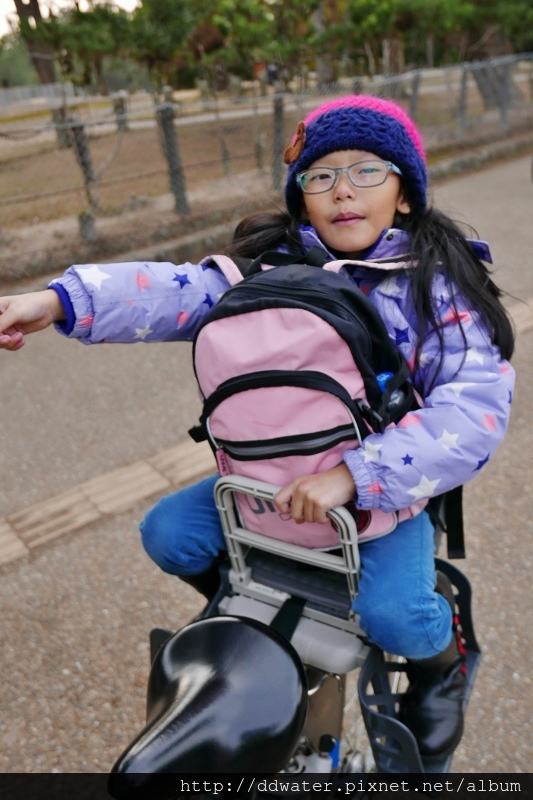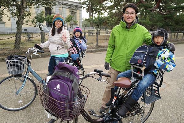 我們是借了四台電動自行車,一個大人載一個小朋友,後面的兒童乘坐限制是27kg,超過27kg就不得坐了喔!!(還好,小二的Diego還差一點點....)