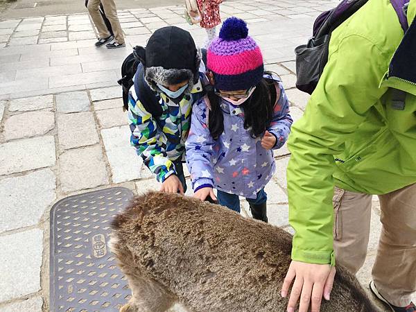 兩小第一次這麼近距離看鹿(其實我也是耶....)而且,還可以摸~