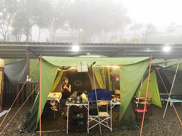 這裡就是C9 VIP區有自己獨立的洗手台及垃圾桶,搭一個睡帳後還有很大的空間,當晚我們大家都聚在這裡吃晚餐。