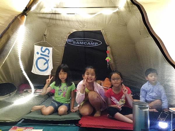 因為下雨,小朋友無法在外面奔跑,只好先窩在帳棚裡玩~