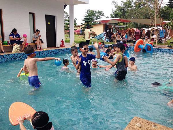 而另一邊就是這羨慕死人的戲水池,就是泳池了!真的超好玩的~暑假的第一天開始露營就怕熱,來玩水消暑啊!!