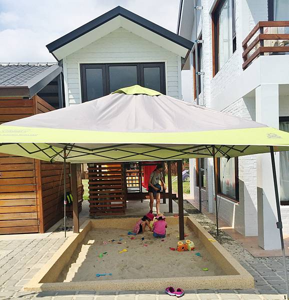 沙坑區,非常貼心的有提供遮蔭棚耶~~小朋友在大太陽下玩沙也不用怕她們會曬到中暑!