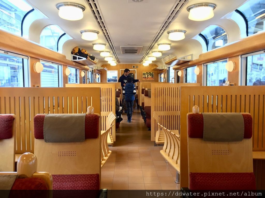 這是car1的車廂,黝黑的列車裡竟然是這般清新的座位:)