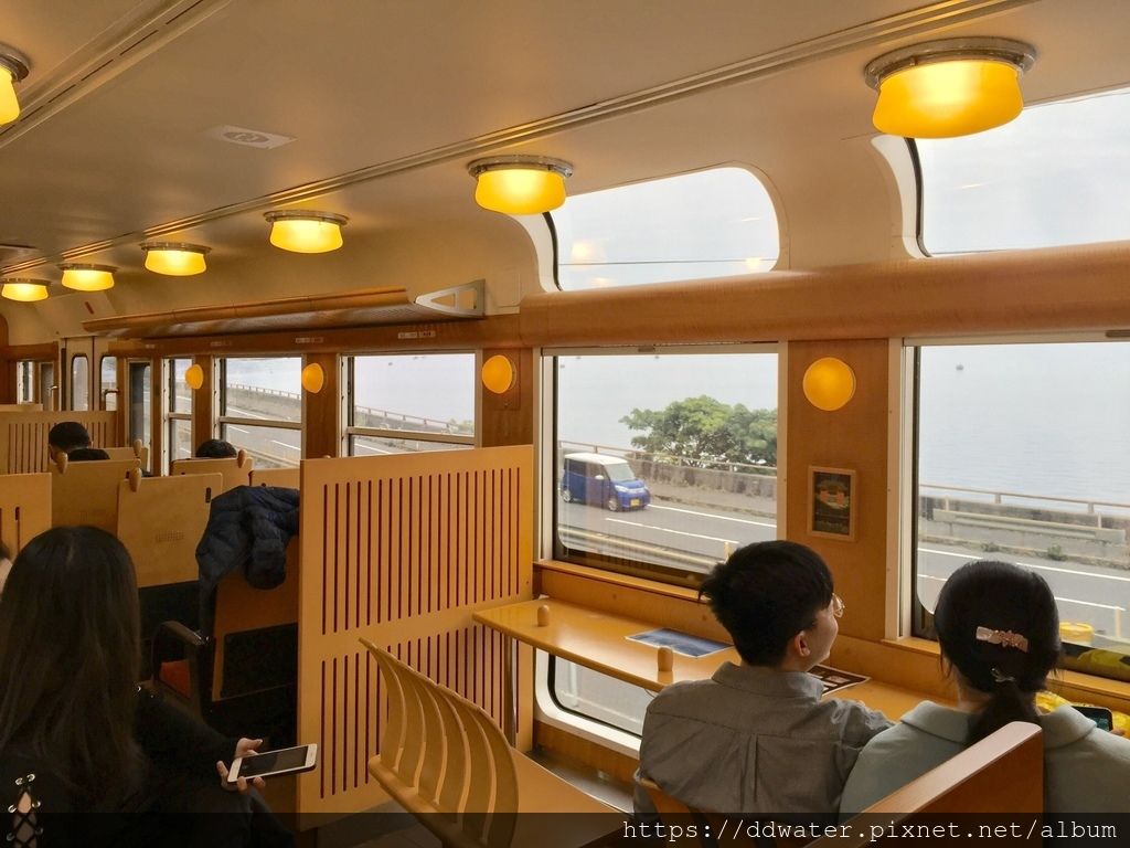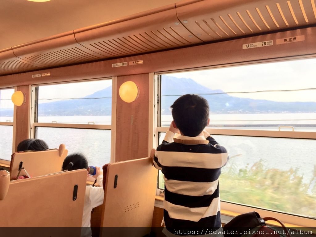 因為鹿兒島~重富的區間,可以眺望在錦江灣上的櫻島,窗都是大片大片的玻璃。