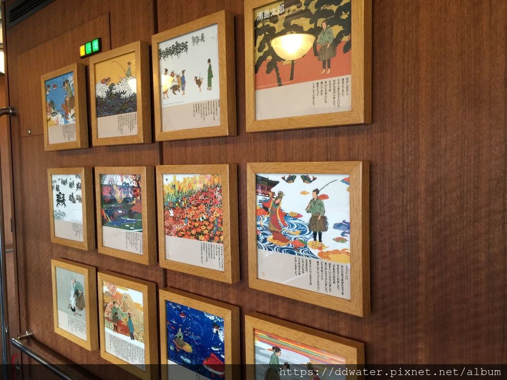 洗手間外也有著浦島太郎童話的繪畫相框,還特別和孩子們看圖說故事了一會兒。