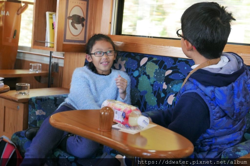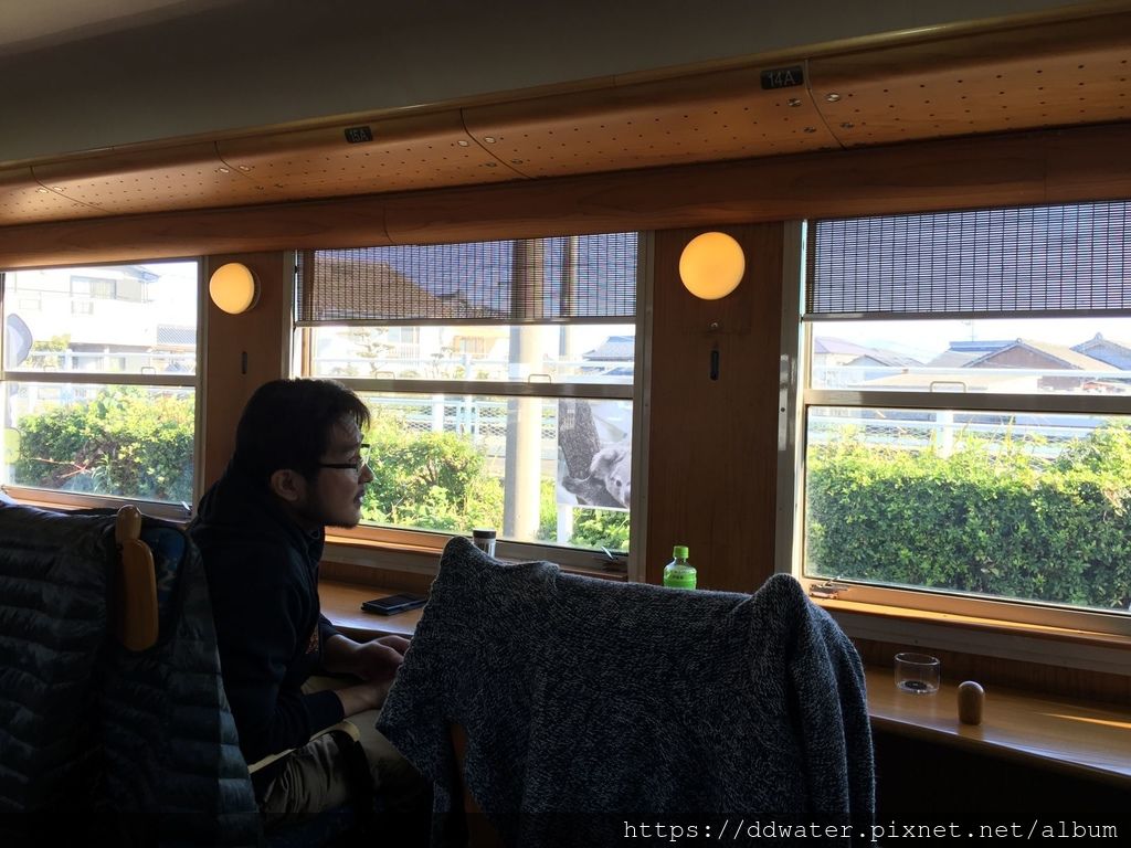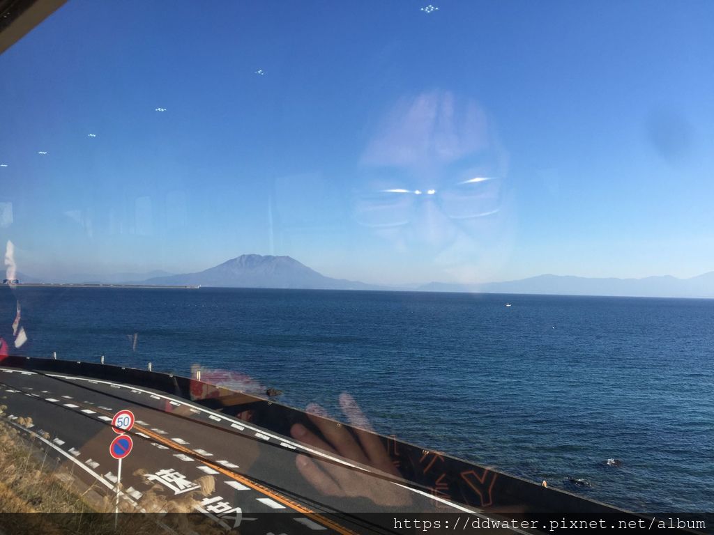 強烈推薦大家要劃這一排面海的位子,除了看海景還可遠眺櫻島火山,遠遠的看著它與昨天踏上它的感覺完全不同。