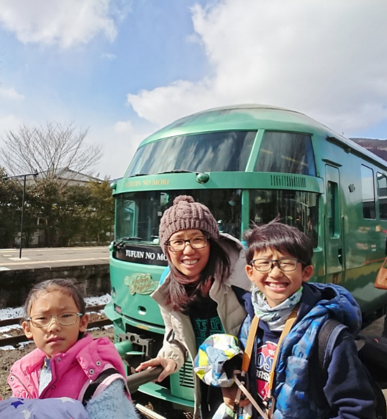 孩子們光看到車站裡的雪就開心到不得了~今晚,我們將下榻於由布院一晚,這一趟路最期待的一晚,入住由布院樹別邸。