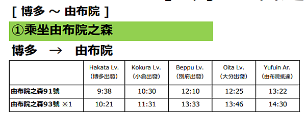 至6/30前的時刻表可以看這裡 → 由布院之森時刻表
