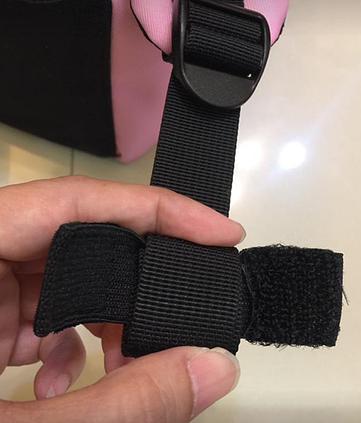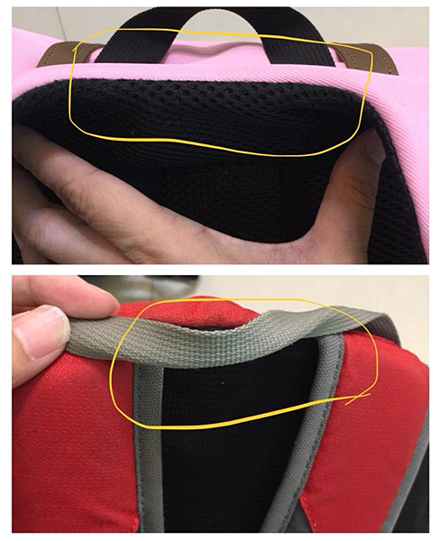 之前舊書包的手提把很容易摩到脖子,Dora是一個皮膚較敏感的孩子,她常常會覺得脖子很癢~