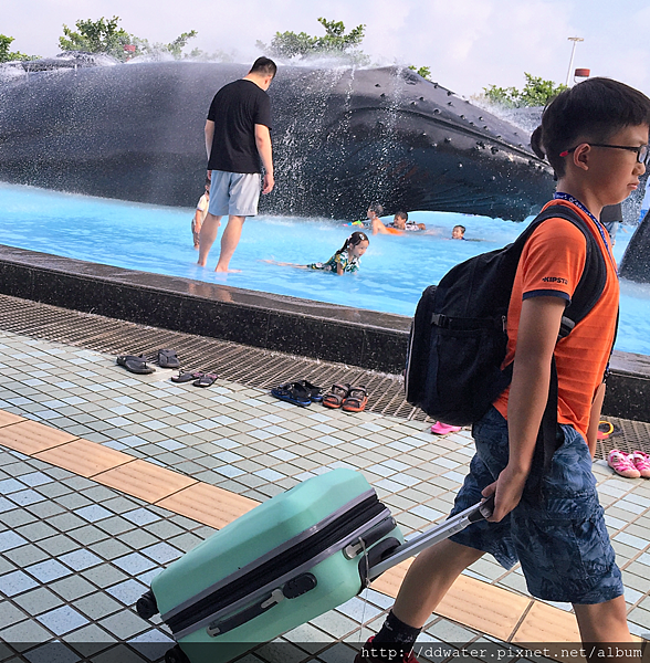 在經過鯨魚廣場看到好多小朋友在玩水時才驚呼!我們又忘了帶一樣東西~泳衣.★★★....(請筆記)